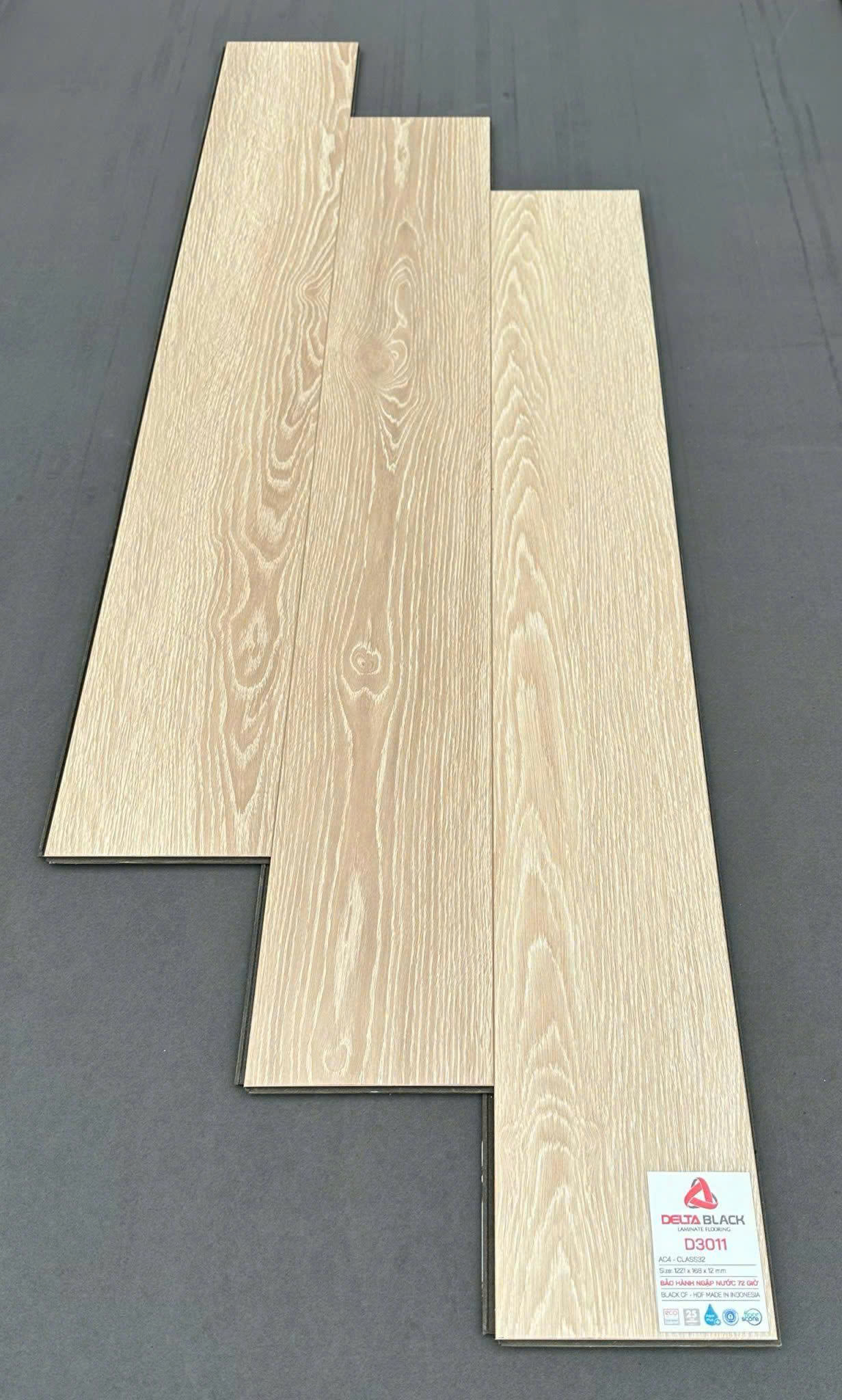 Sàn gỗ Deltablack D3011 thuộc dòng sàn gỗ công nghiệp cốt HDF nhập khẩu Indonesia, với mật độ gỗ cao, độ ổn định tốt và khả năng chống cong vênh.